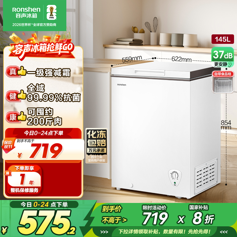 容声(Ronshen)145升减霜小型迷你冰柜家用冷藏冷冻转换单温卧式冷柜一级能效节能省电BD/BC-145ZMSMB