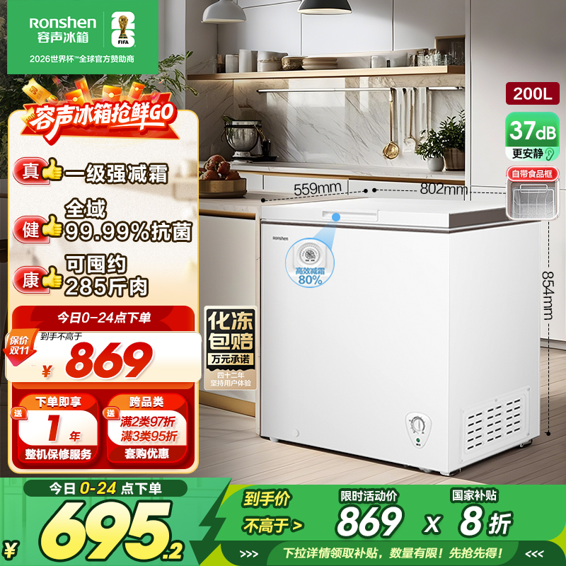 容声(Ronshen)200升减霜冰柜家商两用冷藏冷冻转换单温一级能效节能省电卧式冷柜 BD/BC-200ZMSMB