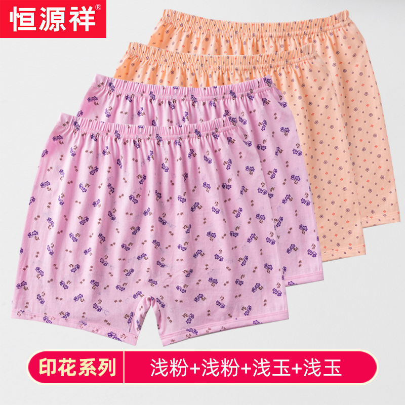 恒源祥女士中老年人内裤纯棉加肥加大宽松四角高腰妈妈奶奶短裤 L 2花粉2玉花