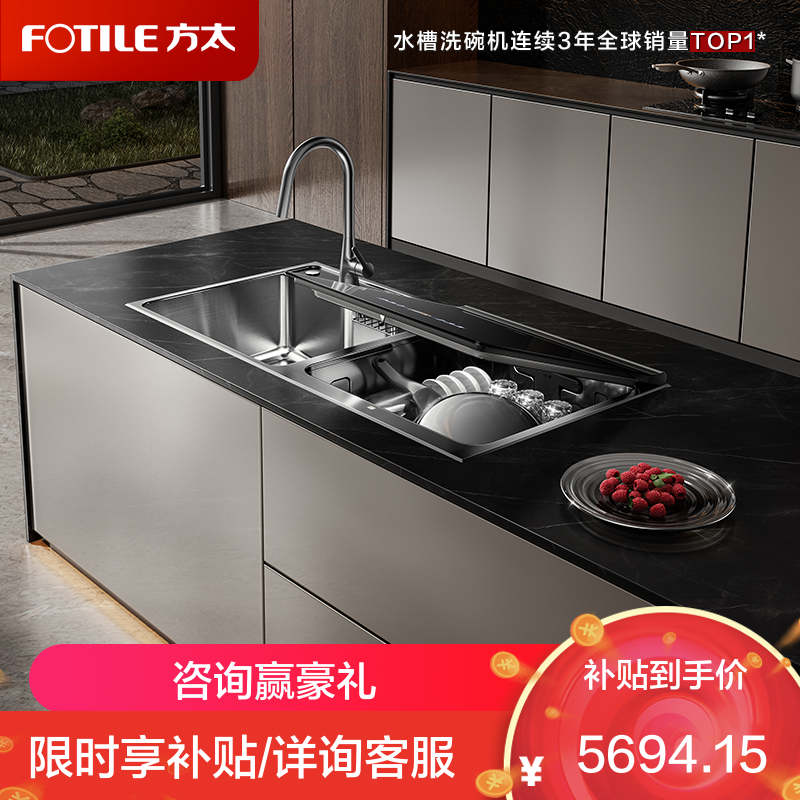 方太水槽洗碗机家用 10套双层顶配锅碗同洗 洗碗不弯腰 五星消杀认证 不锈钢槽体水槽一体嵌入式02-M3