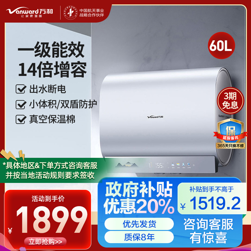 万和(Vanward)长白山系列电热水器储水式家用厨房60升大户型速热节能省电一级能效14倍增容E60-A6Pro-33
