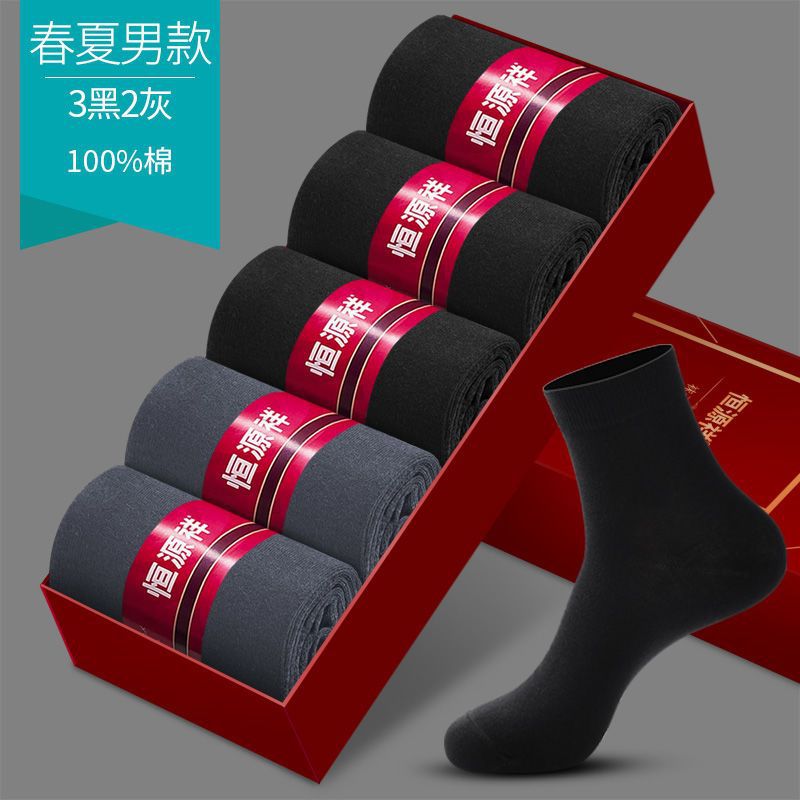 恒源祥袜子男纯棉中筒黑色四季透气吸汗商务棉秋冬厚款男袜_377 100%棉中筒袜 男士薄款-3黑2灰