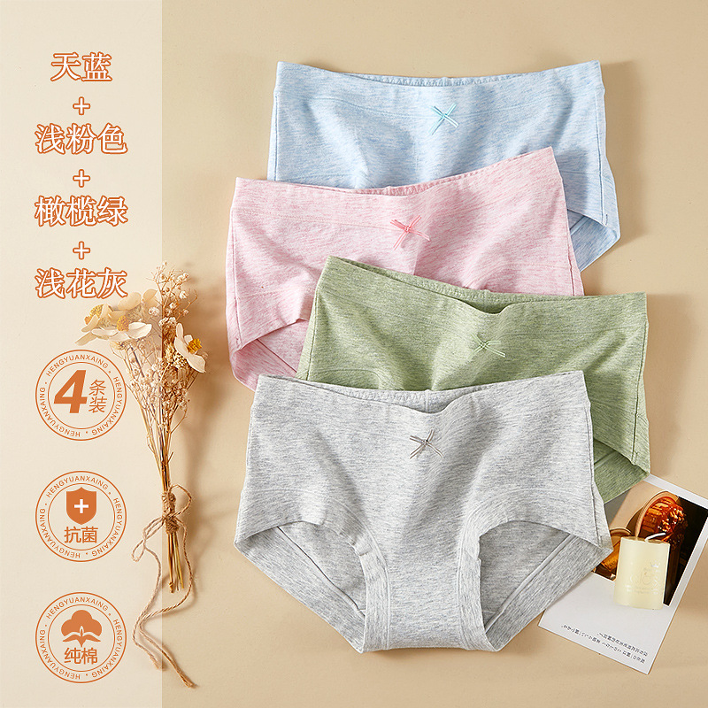 恒源祥内裤女士纯棉女生少女短裤头中腰三角裤春夏季棉薄款 160/M 天蓝+橄榄绿+浅花灰+浅粉色