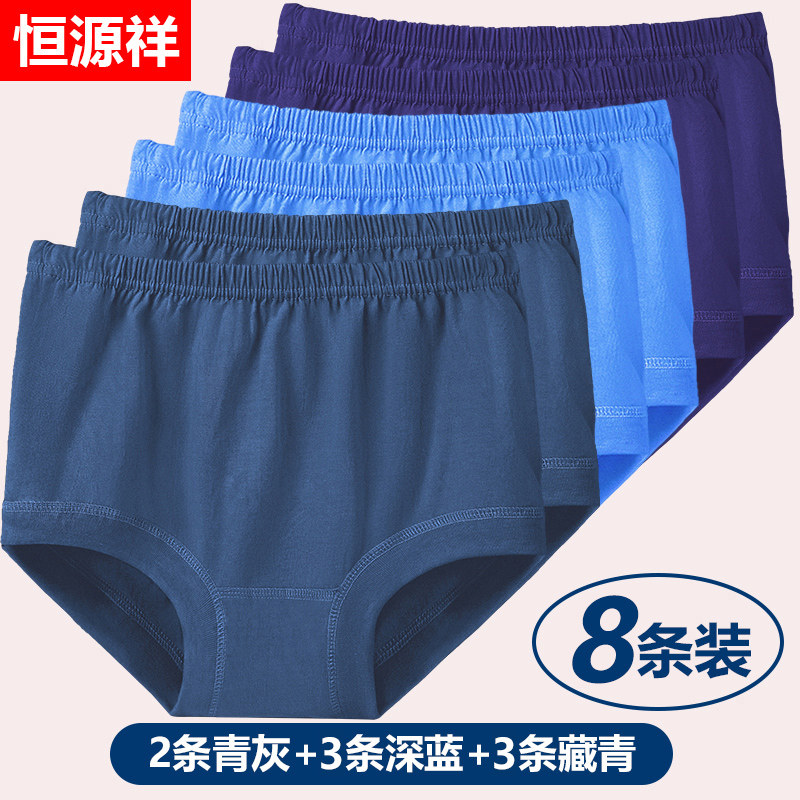 恒源祥中老年人男士内裤男三角裤纯棉宽松透气大码裤衩短裤头爸爸 185/3XL否 【8条】2条青灰+3条深蓝+3条藏青