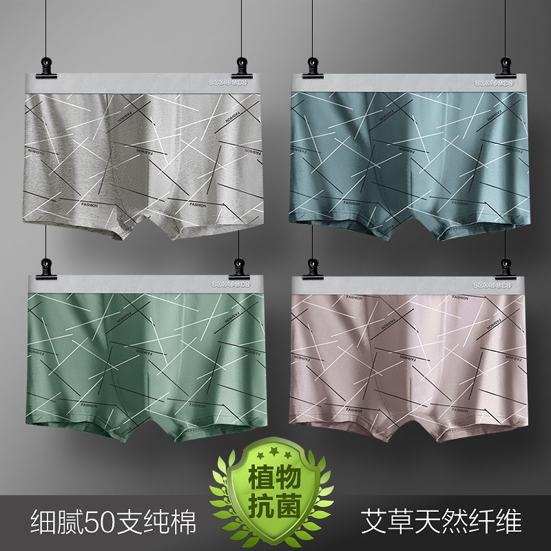 恒源祥纯棉男士内裤平角大码裤衩四角短裤头潮流男生夏季薄款 175/XL 3A植物抗菌【宽边印花1182C】浅灰雾蓝浅绿浅粉