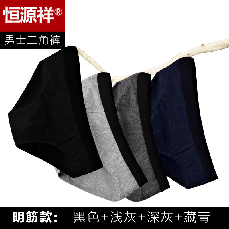 恒源祥男士内裤男三角裤纯棉质短裤透气性感莱卡棉中高腰大码裤头_743 L 明筋(黑色+浅灰+深灰+藏青)