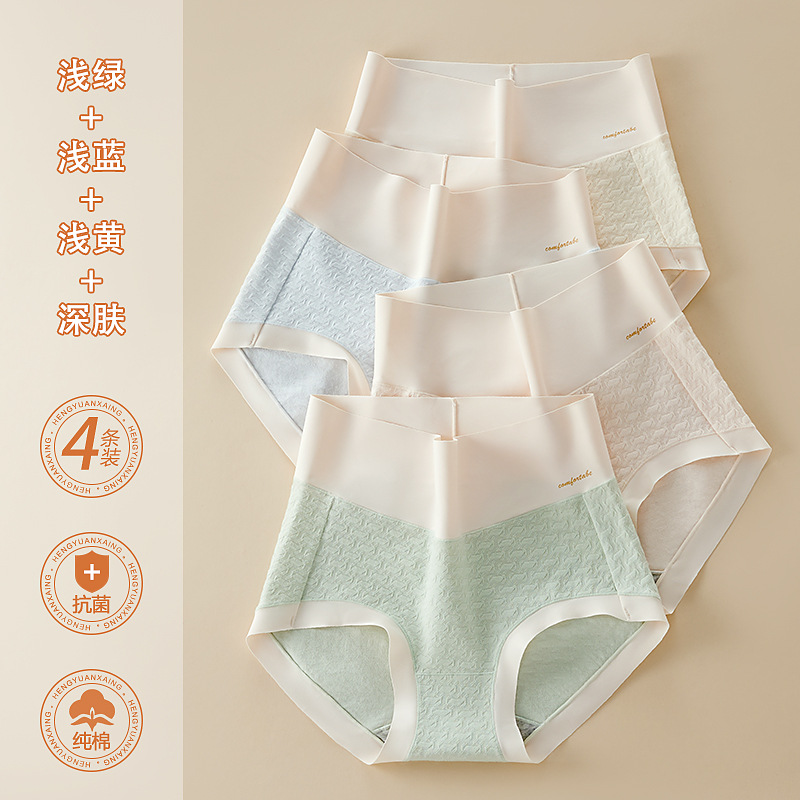 恒源祥高腰内裤女士纯棉胖mm棉裆收腹提臀女生短裤夏季薄款 170/XL 浅绿+浅蓝+浅黄+深肤