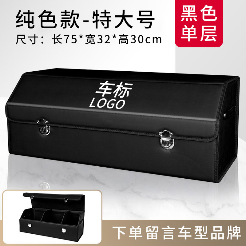 汽车后备箱收纳箱车载储物盒车用整理箱尾箱置物车内装饰用品大全 带标【纯色款-黑色-特大号75cm】下单留言车型