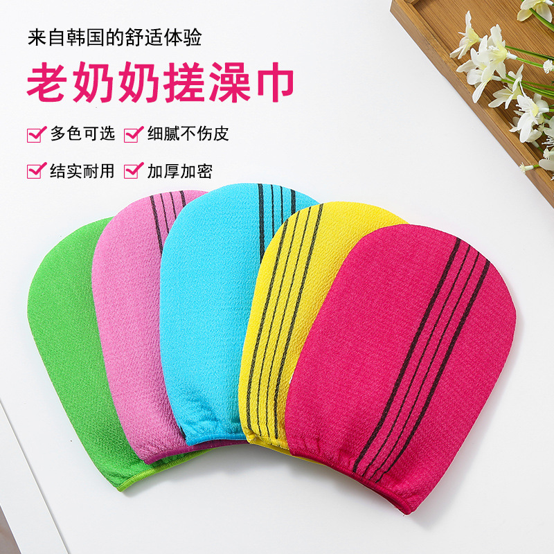 韩国老奶奶搓澡巾加大升级搓泥家用男女沐浴不疼强力洗澡手套 5条搓澡更下泥颜色随机