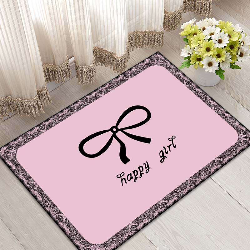 潮牌地毯地垫门垫脚垫卧室浴室防滑垫吸水进门厨房玄关门口地板垫 粉色蝴蝶结3D