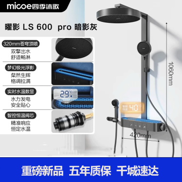四季沐歌卫浴恒温智能增压浴室家用沐浴琴键淋浴花洒套装幻影