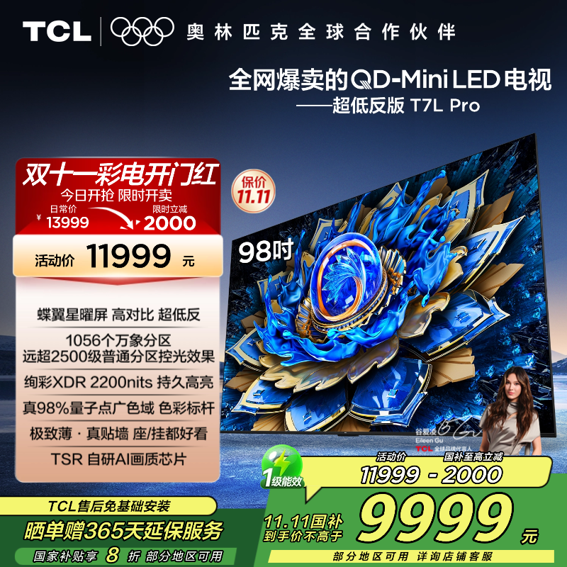 TCL电视 98T7L Pro 98英寸 QD-Mini LED 蝶翼星曜屏 万象分区 绚彩XDR 2200nits