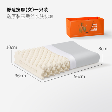 POKALEN(普卡兰)泰国乳胶枕原装进口天然乳胶枕头成人护颈枕颈椎枕正品橡胶枕芯助眠枕家用颈椎枕头 礼盒装 舒适按摩-女款-配18°灰玉蚕丝枕套 一只装〓泰国原装〓钢印防伪〓溯源可查〓天然乳胶含量95%以上
