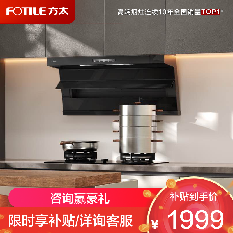 方太齐平顶侧双吸抽吸油烟机大吸力7字型油烟机一级能效L2单烟机 26风量