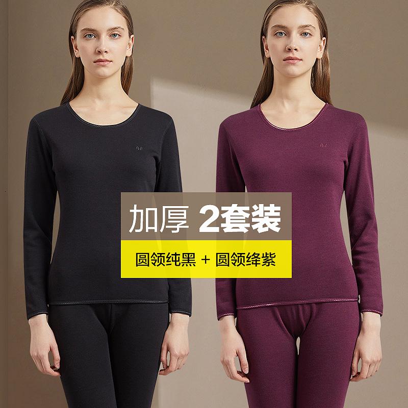 恒源祥保暖内衣男士加厚加绒套装德绒自发热冬季无痕打底秋衣秋裤_75_833 190/4XL【99天质保德国发热纤维】 圆领女(纯黑+绛紫)