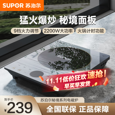 苏泊尔 (SUPOR)电磁炉2200W大功率火锅计时9档调节智能定时多功能火锅炉电磁炉(炒锅+汤锅)C22-IH80E