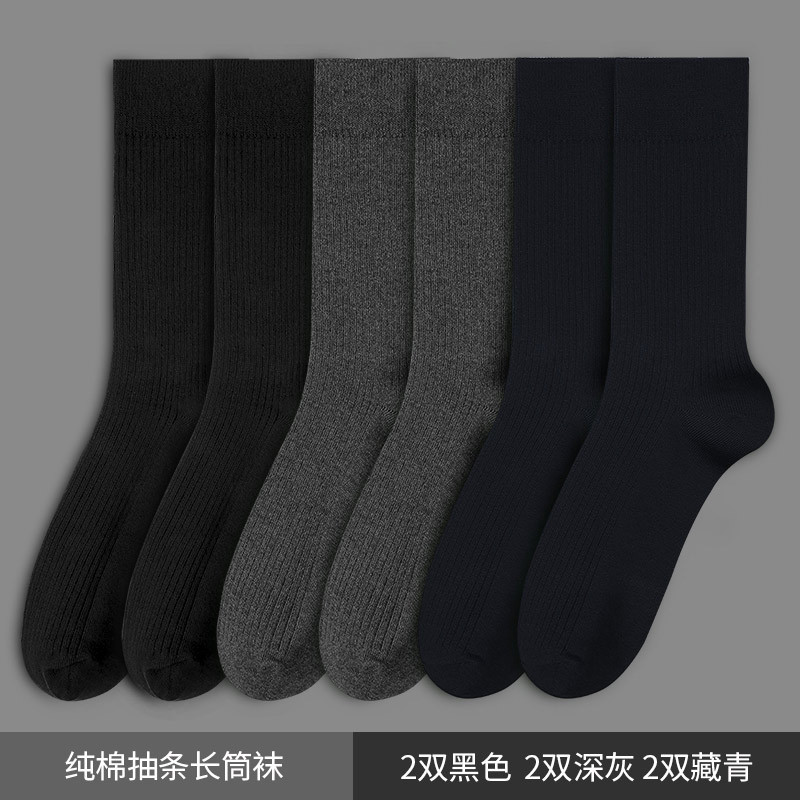 恒源祥袜子男士纯棉秋冬季加厚款长筒棉袜中筒高筒长袜_349 均码【纯棉高筒闪电发货】 纯棉抽条长筒袜【2深灰/2藏青/2黑色】共6双