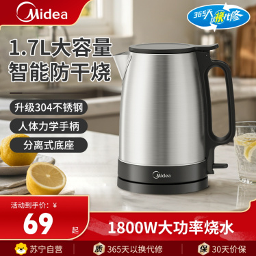 美的(Midea)电水壶MK-SH17X103家用烧水壶1.7升1800W大功率全自动断电办公室开水茶壶电热水壶烧开水壶