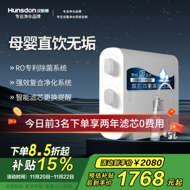 汉斯顿 Hunsdon[国家补贴] 0阻垢剂添加净水器家用直饮净水机厨下式RO反渗透母婴直饮机自来水过滤器D3