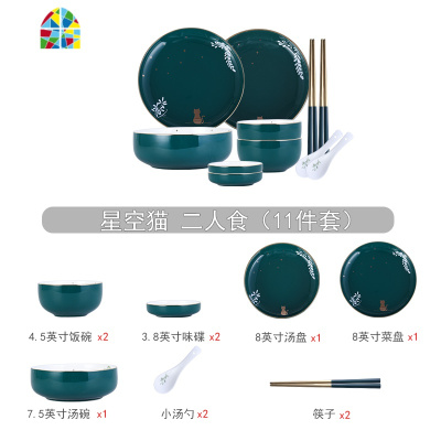 北欧轻奢碗碟套装家用组合碗筷创意简约小清新网红餐具ins风碗盘 FENGHOU 4人食餐具套装