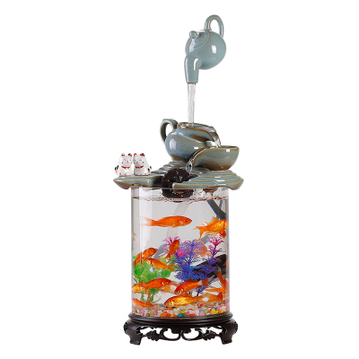 创意悬壶流水生财摆件生态鱼缸玻璃水族箱客厅办公室桌面招财装饰