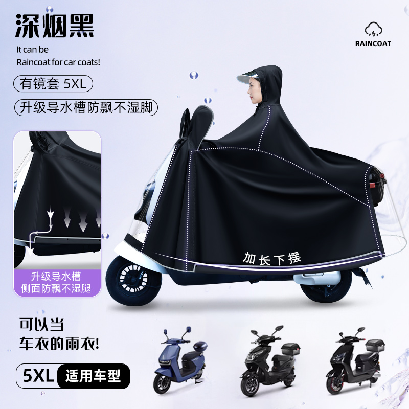 正雨新款电动车电瓶车雨披升级导水槽设计加厚加大耐磨雨披9063