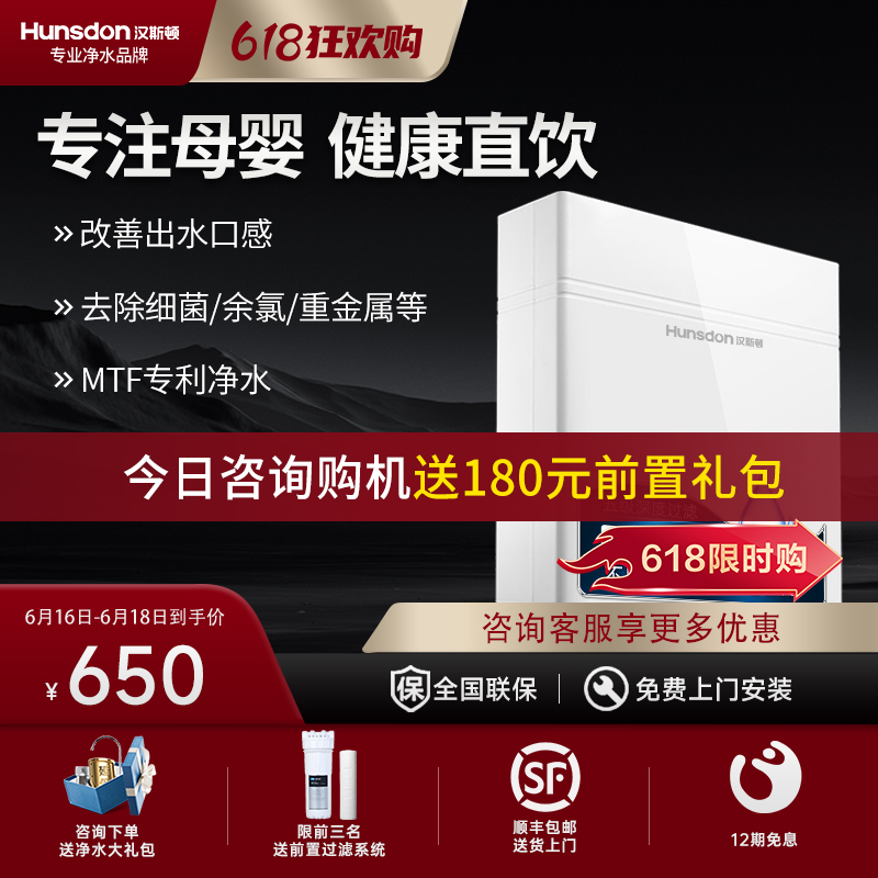 汉斯顿/Hunsdon[国家补贴]净水器家用厨房自来水过滤器厨下式无桶大流量净水机320EY 120L/H不用电无废水