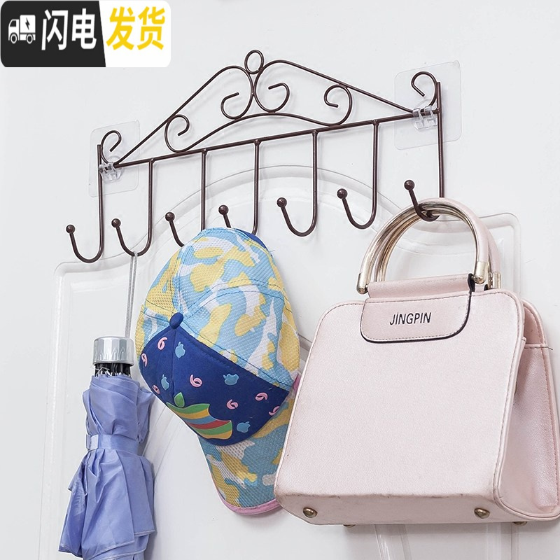 三维工匠铁艺后挂钩免钉上挂衣架挂钩置物架卧室衣帽钩卫生间无痕钩 买2送1为同款挂钩,五钩七钩各一个没