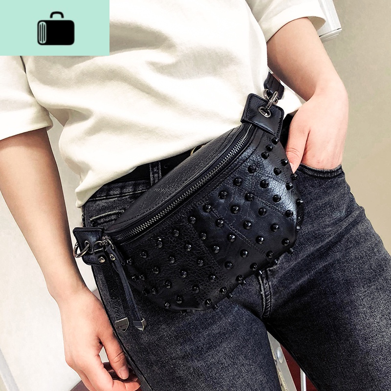 胸包女小包包2020韩版新款链条斜挎百搭时尚皮铆钉女腰包NEW LAKE 黑色99-2女斜挎包