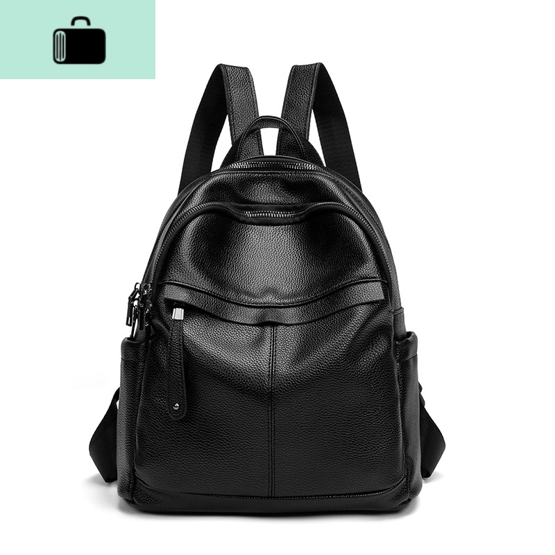 高级质感皮双肩包女2020新款韩版百搭头层牛皮女士休闲防盗背包NEW LAKE 黑色