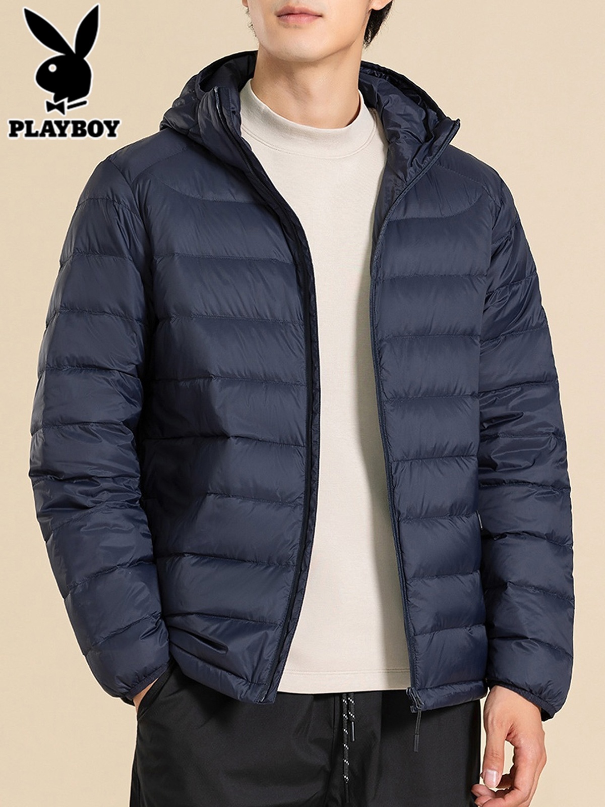 花花公子轻薄羽绒服男士连帽防寒服2025年冬季新款辑行保暖外套男