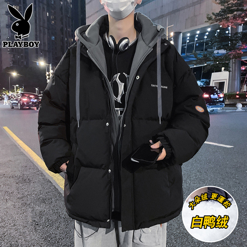 花花公子假两件羽绒服男士冬季2024年新款潮牌加厚面包服男生外套