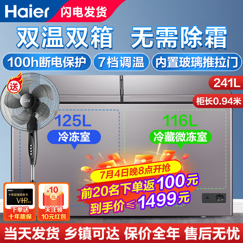 海尔冰柜家用无需除霜冷柜 冷藏冷冻双温双箱冰柜 卧式商用冷冻柜 母婴母乳保鲜柜 【新升级款】311升单门双温潮流钛金灰
