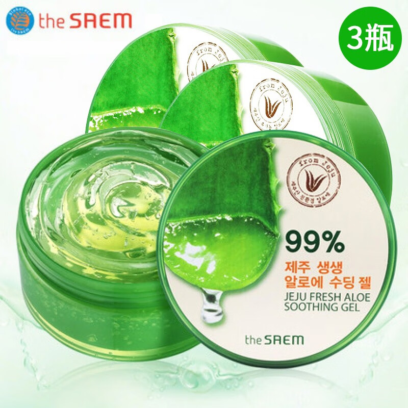 韩国得鲜芦荟胶补水保湿面霜面膜舒缓晒后补水痘坑印男女士 3瓶装