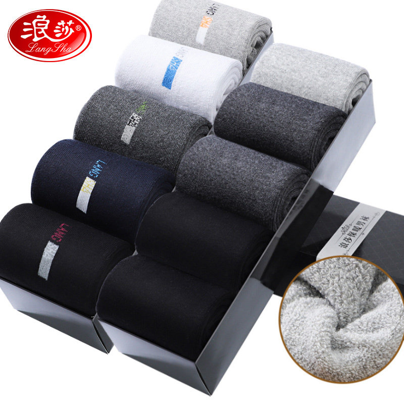 4浪莎langsha男士纯棉袜子男中筒春秋初冬厚款商务运动休闲棉袜2双 厚款821/2双/深灰2 均码/26-28cm/适合39-43码