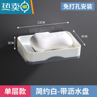 敬平肥皂盒免打孔壁挂式创意双层沥水架旋转卫生间浴室香皂置物架 单层-简约白[带沥水盘]