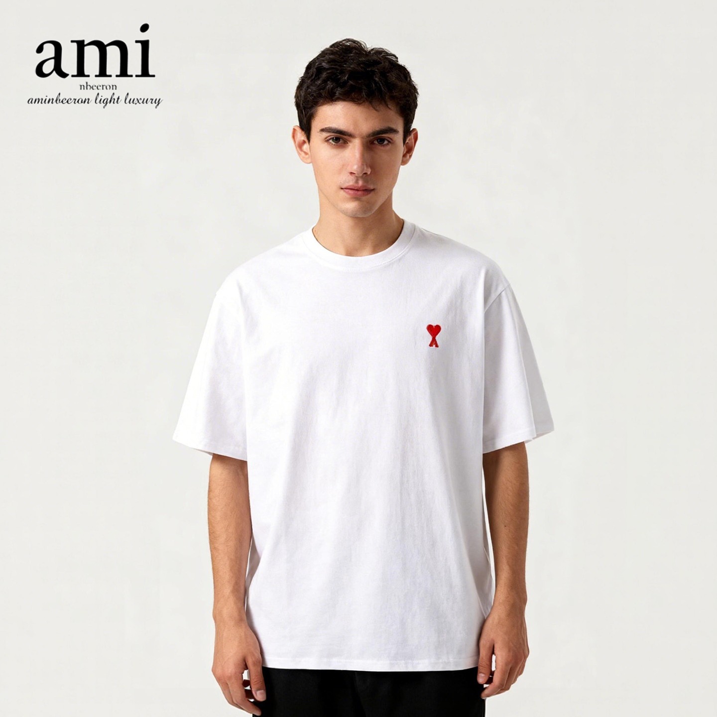 ami nbeeron纯棉短袖t恤重磅新疆棉圆领打底衫男女百搭休闲轻奢T S 白色