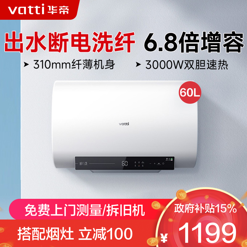 华帝(vatti)60升电热水器储水式超薄双胆扁桶3000w双管速热6.8倍增容DDF60-i14201