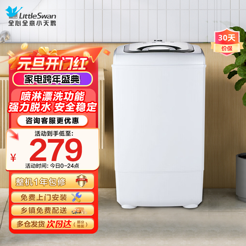 [苏宁自营]小天鹅洗衣机全自动波轮洗衣机8公斤一级能效除菌除螨家电宿舍租房神器以旧换新TB80V26DT
