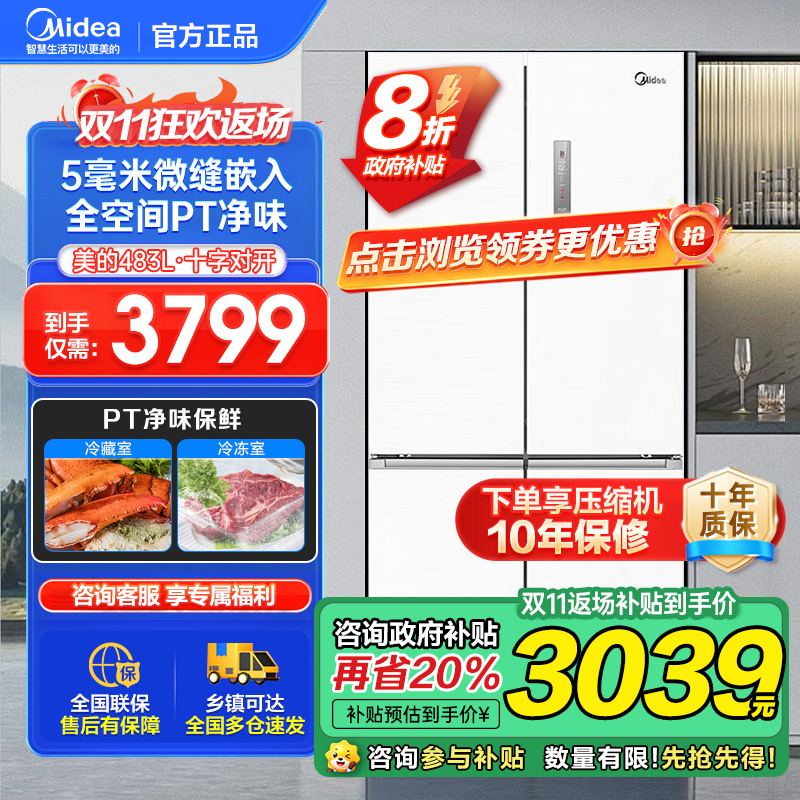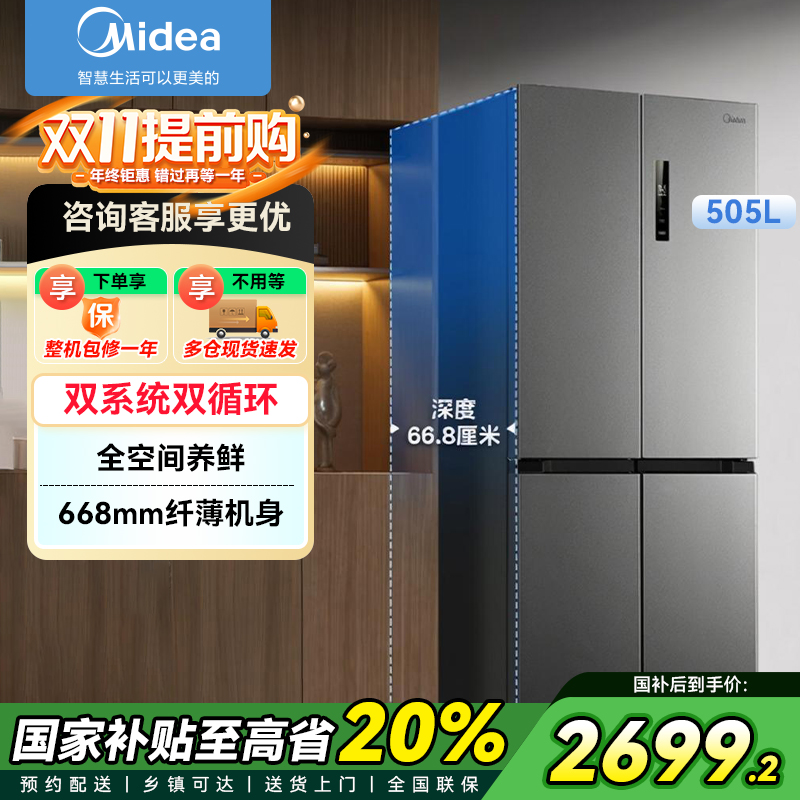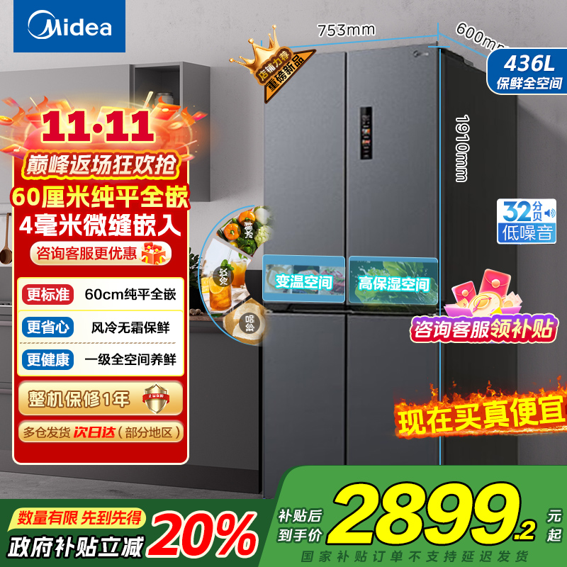 很喜欢这款四开门美的冰箱,它用细腻质感重新定义厨房美学。冰川银面板如月光倾泻,搭配一体化隐形把手,在光影流转间勾勒出简约而不失格调的轮廓,与现代家居风格无缝相融。分区存储设计堪称生活智慧的完美体现,采用独立控温技术,蔬果保鲜舱能精准维持湿度,让绿叶菜存放一周仍水灵如初。双循环风路系统,深冷锁鲜技术快速冻结食材细胞,留存肉类原始风味与营养。底部散热设计打破安装限制。智能APP远程操控功能更是点睛之笔,出门在外也能调节温度、查看食材保鲜状态,它以静默运行的压缩机与低噪散热系统,成为厨房里最可靠的隐形管家,用科技温度守护每一份生活热爱。值得一提的是,苏宁易购服务很好,之前选大了一款冰箱,退货退款快速,客服热情,解决问题迅速,是值得信赖的商家。以后买家电,就在苏宁易购买。