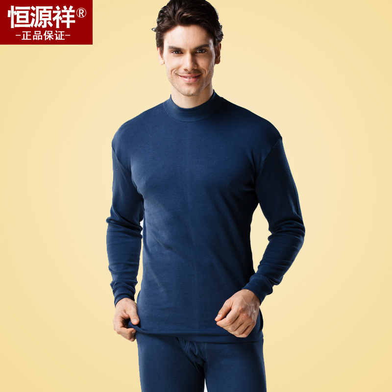 恒源祥棉毛衫女纯棉中高领套装保暖内衣男士秋衣秋裤基础内衣_9 XL 男士青灰色