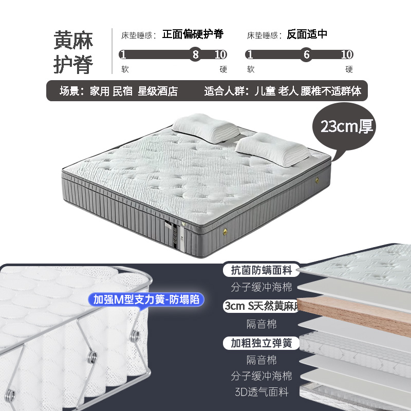 星级酒店床垫天然乳胶记忆棉床垫3E椰棕黄麻软硬两用护脊3D床垫 S型黄麻护脊(家用偏硬护脊款 120*200cm