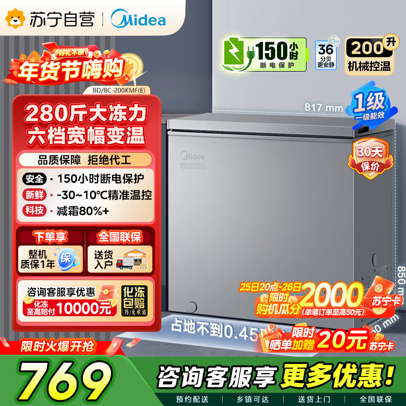 [自营]美的冰箱(Midea)200升 低霜家用 冷藏冷冻转换冰柜 一级能效母婴母乳冷柜 BD/BC-200KMF(E)