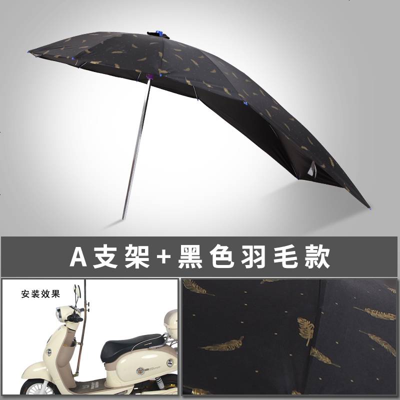 电动电瓶车雨棚蓬新款摩托车雨伞遮阳伞自行车防晒挡风罩挡雨加厚 黑胶加长_黑色羽毛+A支架(银伞架)