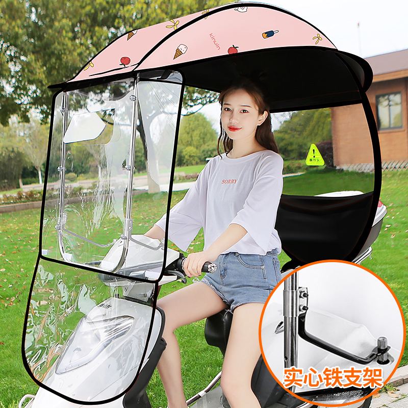 电动摩托车挡雨棚新款电瓶车防晒防雨挡风罩加厚车棚遮阳伞雨篷蓬_895_101 【特惠】粉冰淇淋-有镜拍