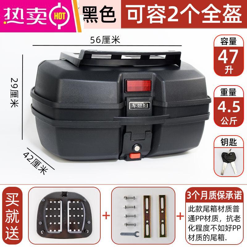 摩托车后备箱通用特大号箱子电动车大号后背箱大容量电瓶车尾箱_456 车媳妇982【黑色/带顶架】47L