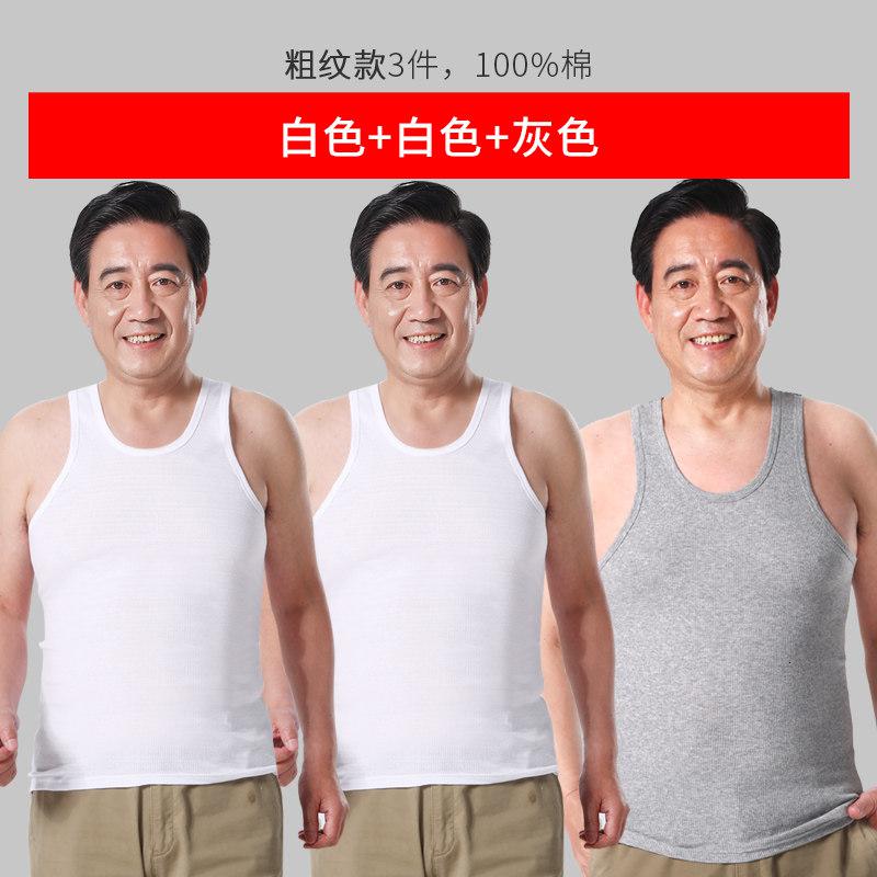 恒源祥纯棉男士背心老人白汗衫春秋跨栏大码内穿老年人老头衫夏季_642_467 180/2XL 抗菌【修身款】白色+白色+浅灰