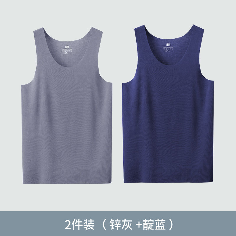 恒源祥背心男士夏季薄款透气冰丝无痕内穿打底汗衫运动跨栏无袖潮 165/M 【2件】冰丝无痕背心【灰/蓝】