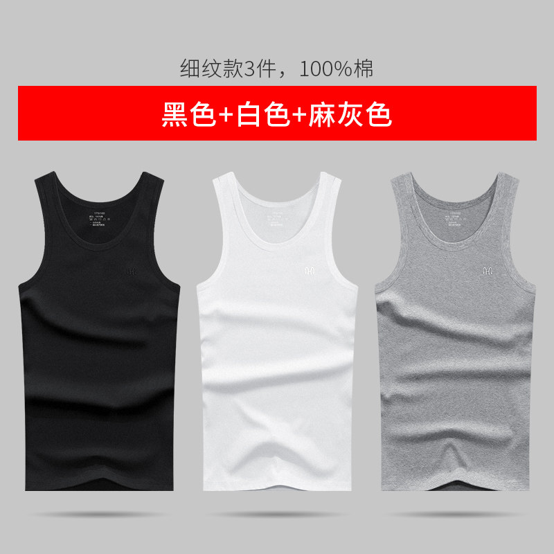 恒源祥纯棉男士背心夏季无痕跨栏内穿吸汗全棉大码打底春秋白汗衫_691 170/L 【宽松】黑色+白色+浅灰