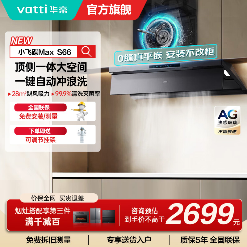 [销量过万]华帝(vatti) 大吸力油烟机i11109S 新升级23m³免拆洗欧式顶吸触控式抽油烟机